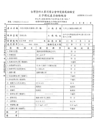 台湾涂料工业同业公会研究发展检验室-正字标记产品检验报告-水性水泥漆(乳胶漆)第二种